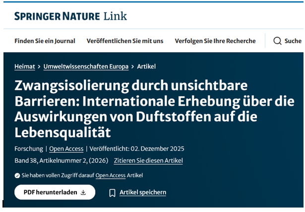 Veröffentlichung der internationalen Studie„Zwangsisolierung durch unsichtbare Barrieren: Internationale Erhebung über die Auswirkungen von Duftstoffen auf die Lebensqualität“